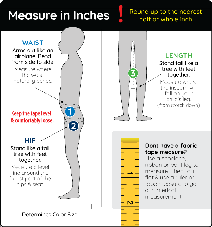 | Size | Waist | Hip | Traditional Age (Waist/Hip) | Inseam |
